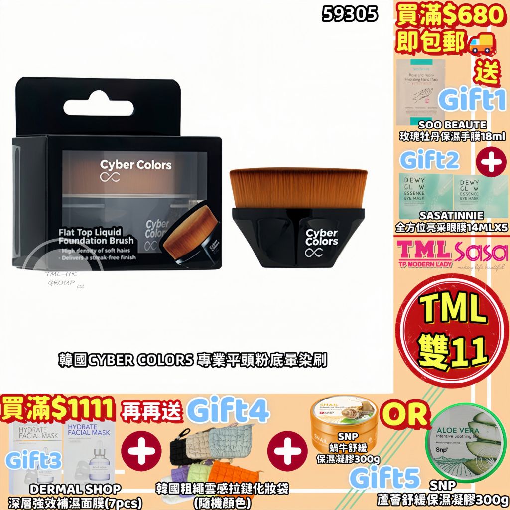SASA X TML 韓國CYBER COLORS 專業平頭粉底暈染刷 FLAT TOP LIQUID FOUNDATION BRU【全場買滿$680包郵 | 16/11截單 | 預計聖誕前收貨 | 20251111(59305.)】