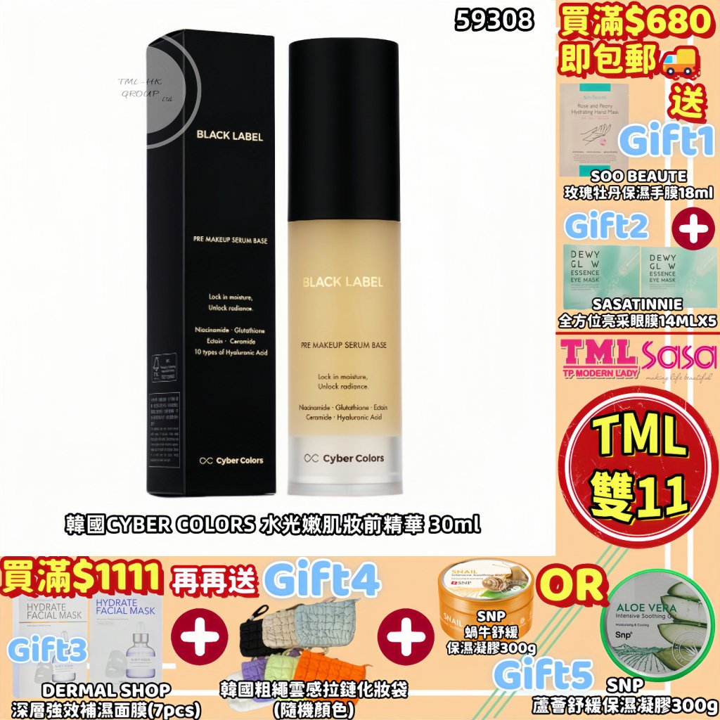 SASA X TML 韓國CYBER COLORS 水光嫩肌妝前精華 PRE MAKEUP SERUM BASE 30ml【全場買滿$680包郵 | 16/11截單 | 預計聖誕前收貨 | 20251111(59308.)】