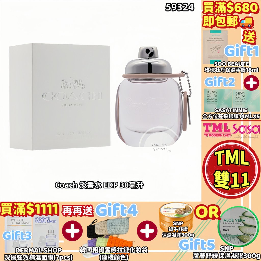 主頁 SASA X TML Coach 淡香水 EDP 30毫升【全場買滿$680包郵 | 16/11截單 | 預計聖誕前收貨 | 20251111(59324.)】