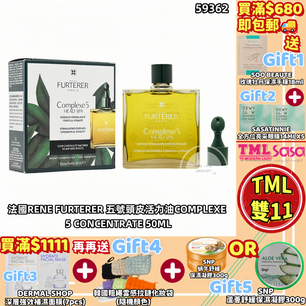 主頁 SASA X TML 法國RENE FURTERER 五號頭皮活力油COMPLEXE 5 CONCENTRATE 50ML【全場買滿$680包郵 | 16/11截單 | 預計聖誕前收貨 | 20251111(59362.)】