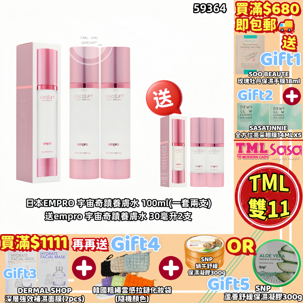 主頁 SASA X TML 日本EMPRO 宇宙奇蹟養膚水 100ml(一套兩支)【全場買滿$680包郵 | 送便攜裝30ml兩支 | 16/11截單 | 預計聖誕前收貨 | 20251111(59364.)】