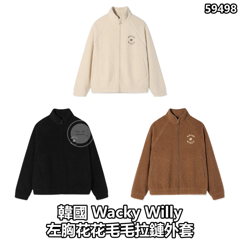 韓國 Wacky Willy 左胸花花毛毛拉鏈外套 (WA2503JK65)【14/12截單 | 預計1月中至尾到貨 | 20251209B(59498.)】