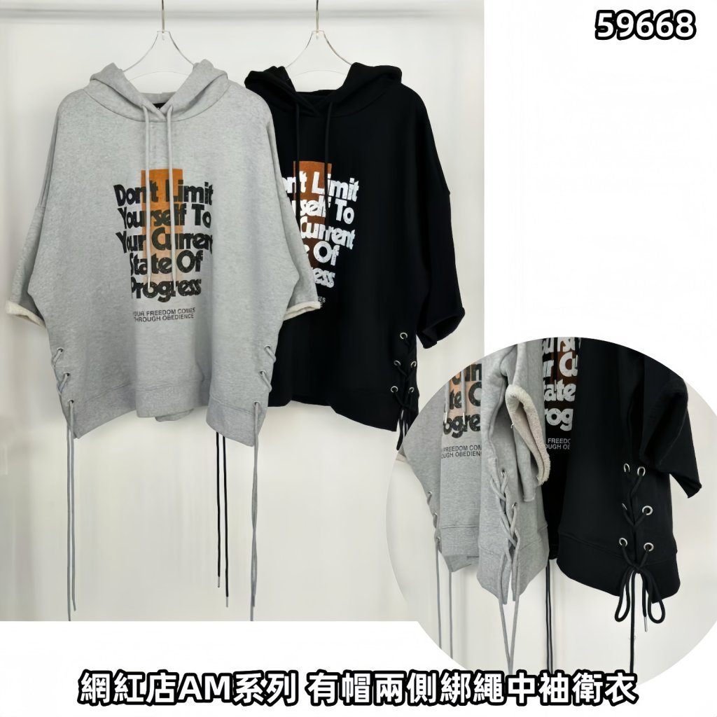 東大門網紅店AM系列 有帽兩側綁繩中袖衛衣【5件包郵 | 30/11截單 | 預計1月初到貨 | 20251125B(59668.)】