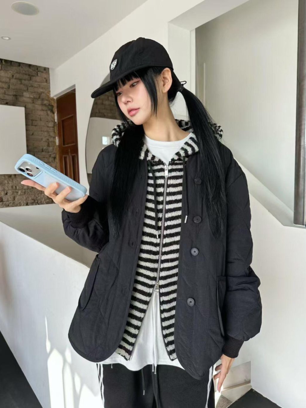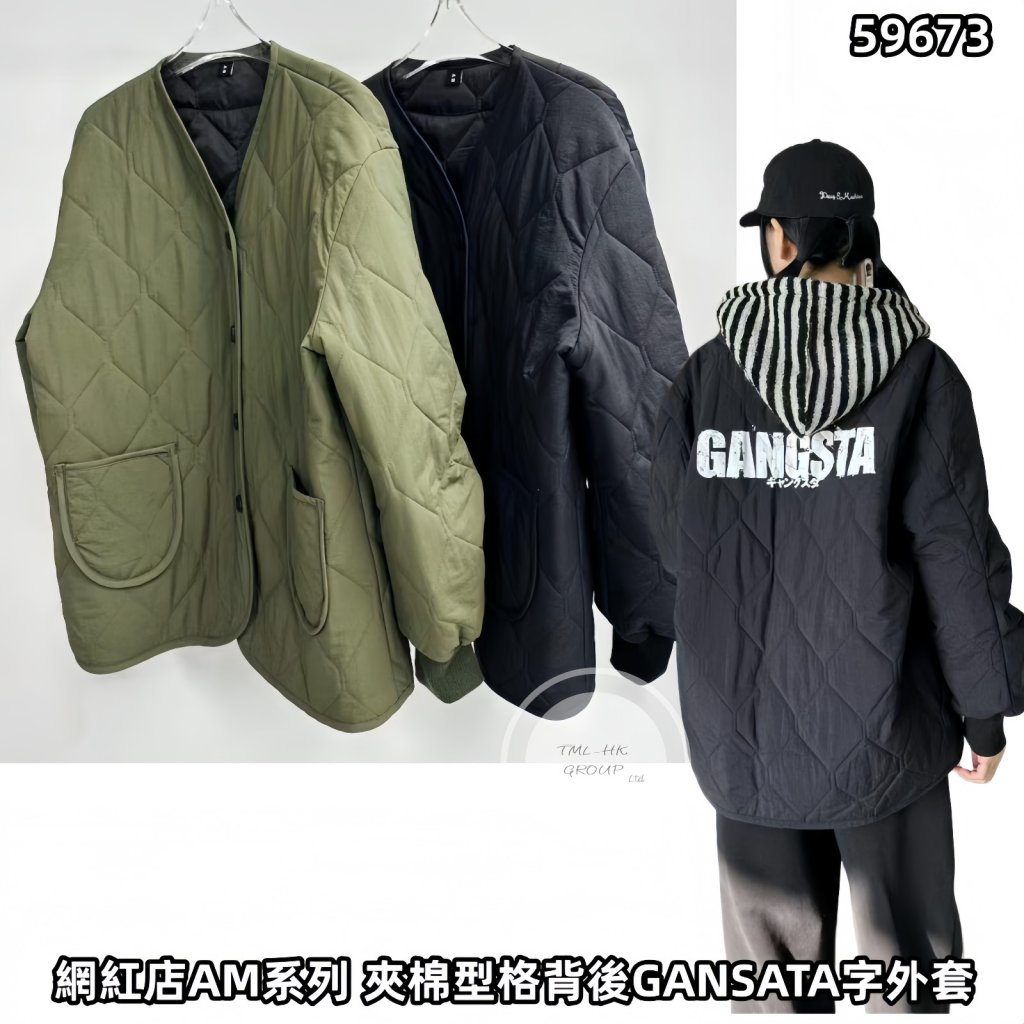 東大門網紅店AM系列 夾棉型格背後GANSATA字外套【5件包郵 | 30/11截單 | 預計1月初到貨 | 20251125B(59673.)】