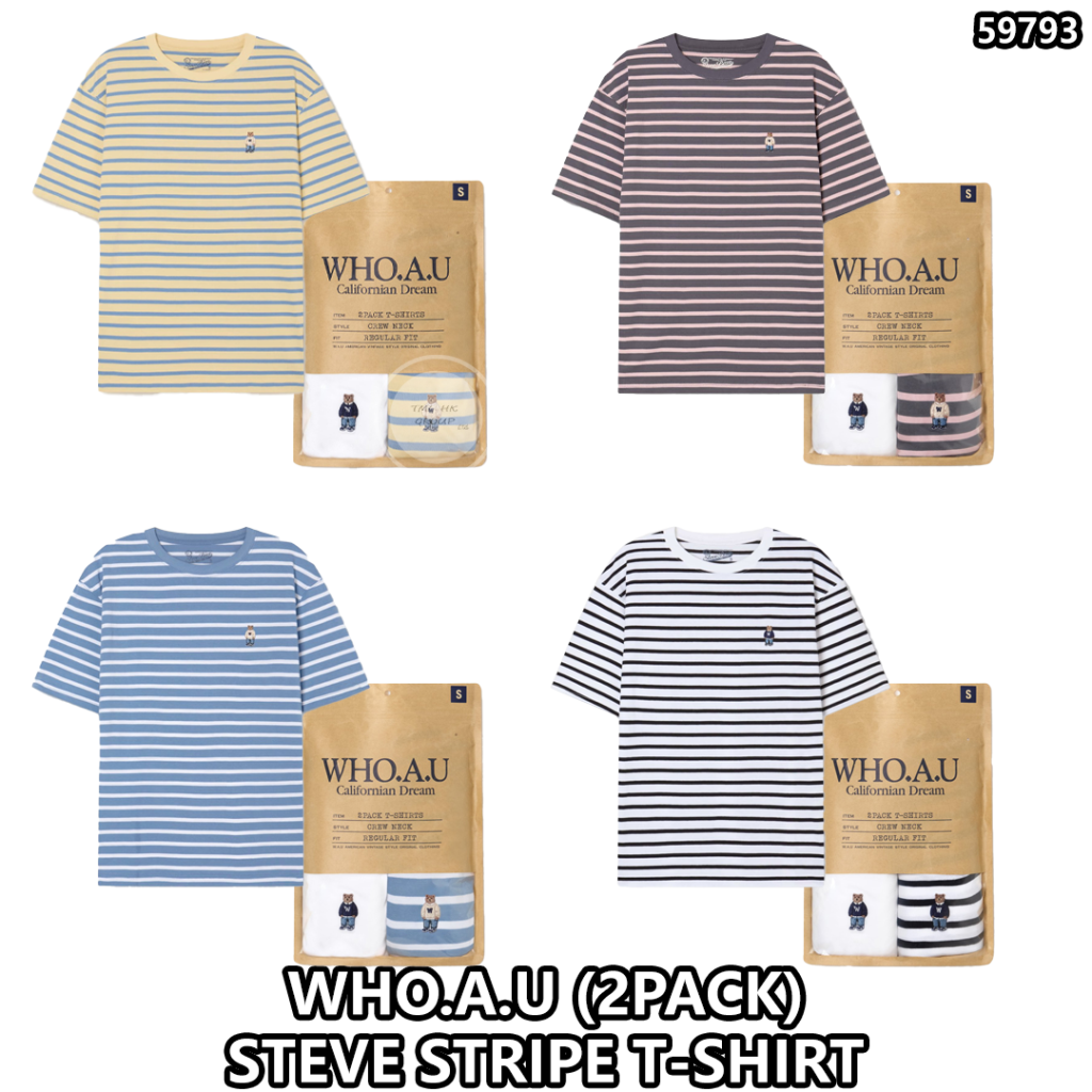 韓國 WHO.A.U (2PACK) STEVE STRIPE T-SHIRT (WHRSG2352U)【14/2截單 | 預計3月中至尾到貨 | 20260208A(59793.)】