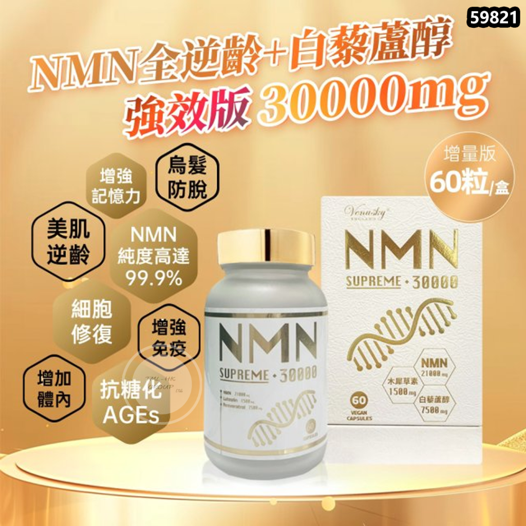 英國 VENUSKY NMN supreme 30000mg 膠囊 60粒【買滿$1000包郵 | 9/12截單 | 預計12月尾到貨 | 20251204(59821.)】