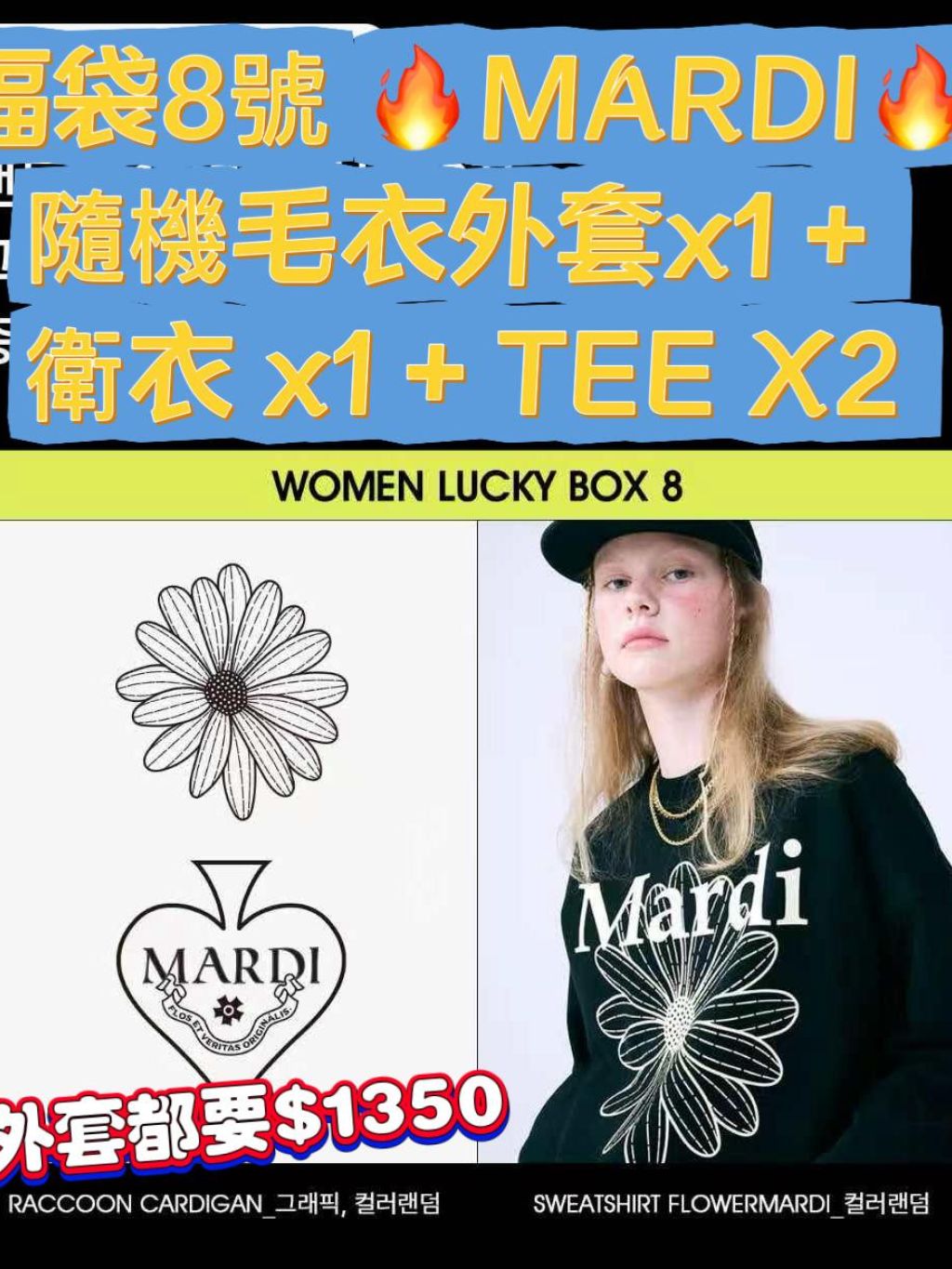 【福袋8號】限量MARDI (隨機款式, 不設退換)(毛衣外套x1, 衛衣x1,TEE x2 )【19/11截單9:00am | 預計12月中至尾到貨 | 20251118(59913.)】