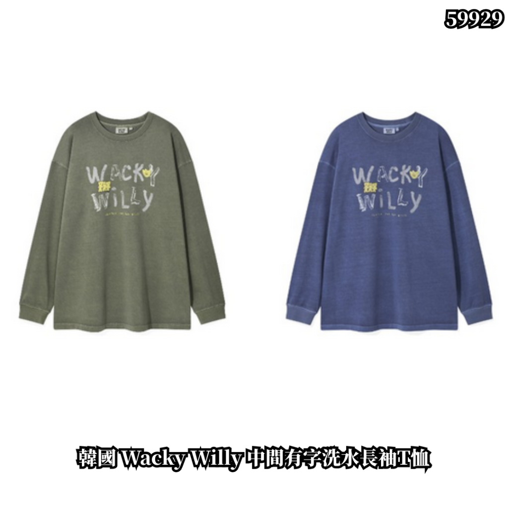 韓國 Wacky Willy 中間有字洗水長袖T恤(WA2503LT13)【14/12截單 | 預計1月中至尾到貨 | 20251209B(59929.)】