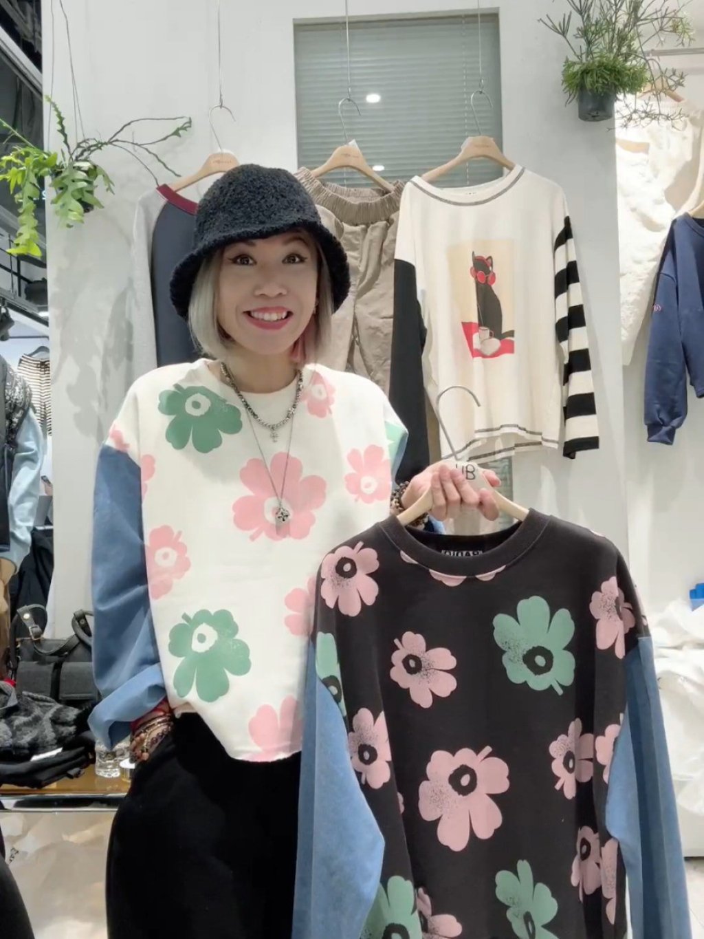 韓國 RA系列 MONOGRAM花花PRINT拼布袖圓領薄絨衛衣【獨立5件包郵 | 4件以上減$10 | 15/12截單 | 預計1月中至尾到貨 | 20251210B(59940.)】