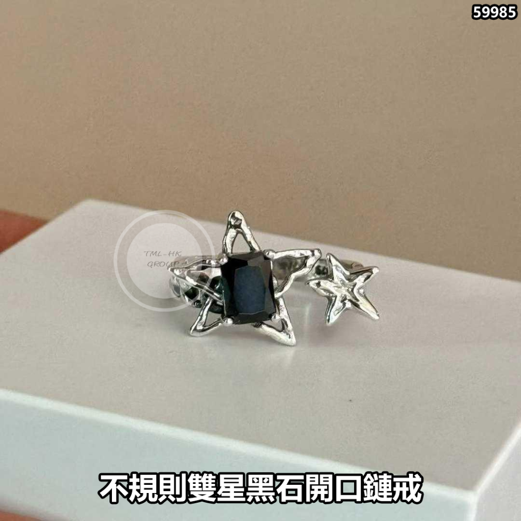 韓國 MM925純銀系列 不規則雙星黑石開口鏈戒【6件包郵 | 4件以上減$10 | 16/12截單 | 預計1月中至尾到貨 | 20251211B(59985.)】