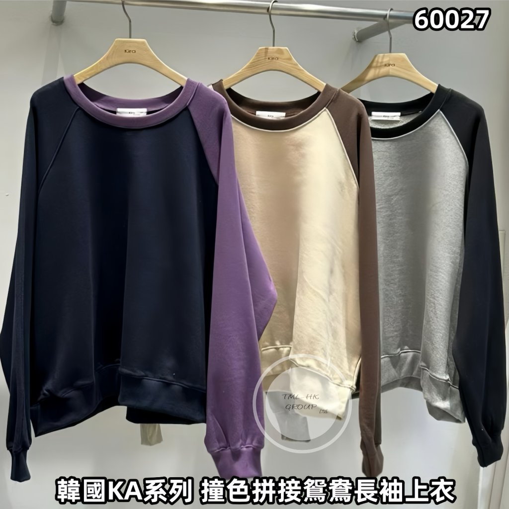 韓國KA系列 撞色拼接鴛鴦長袖上衣【5件包郵 | 4件減每件$10 | 20/12截單 | 預計1月中至尾到貨 | 20251215A(60027.)】