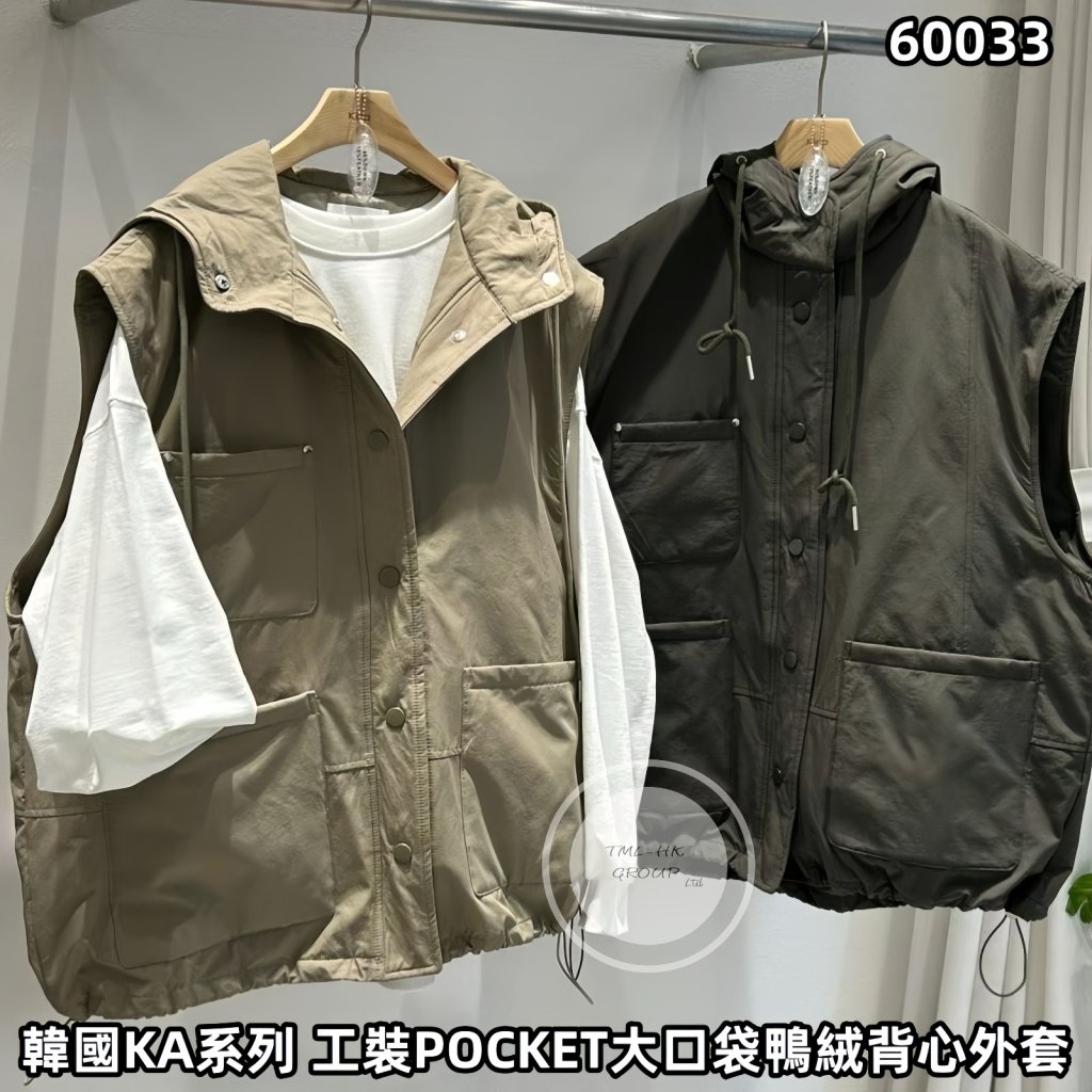 韓國KA系列 工裝POCKET大口袋鴨絨背心外套【5件包郵 | 4件減每件$10 | 20/12截單 | 預計1月中至尾到貨 | 20251215A(60033.)】
