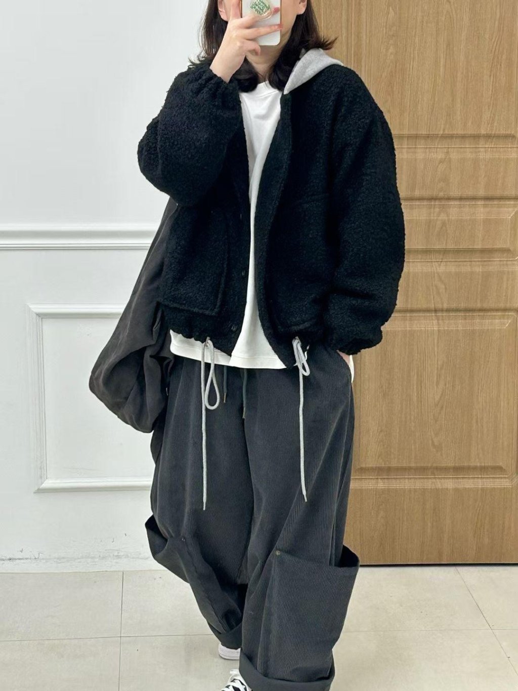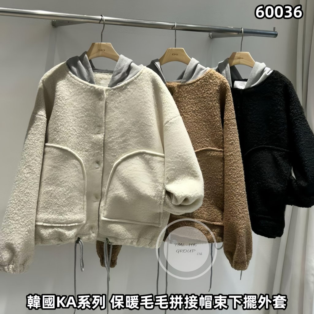 韓國KA系列 保暖毛毛拼接帽束下擺外套【5件包郵 | 4件減每件$10 | 20/12截單 | 預計1月中至尾到貨 | 20251215A(60036.)】