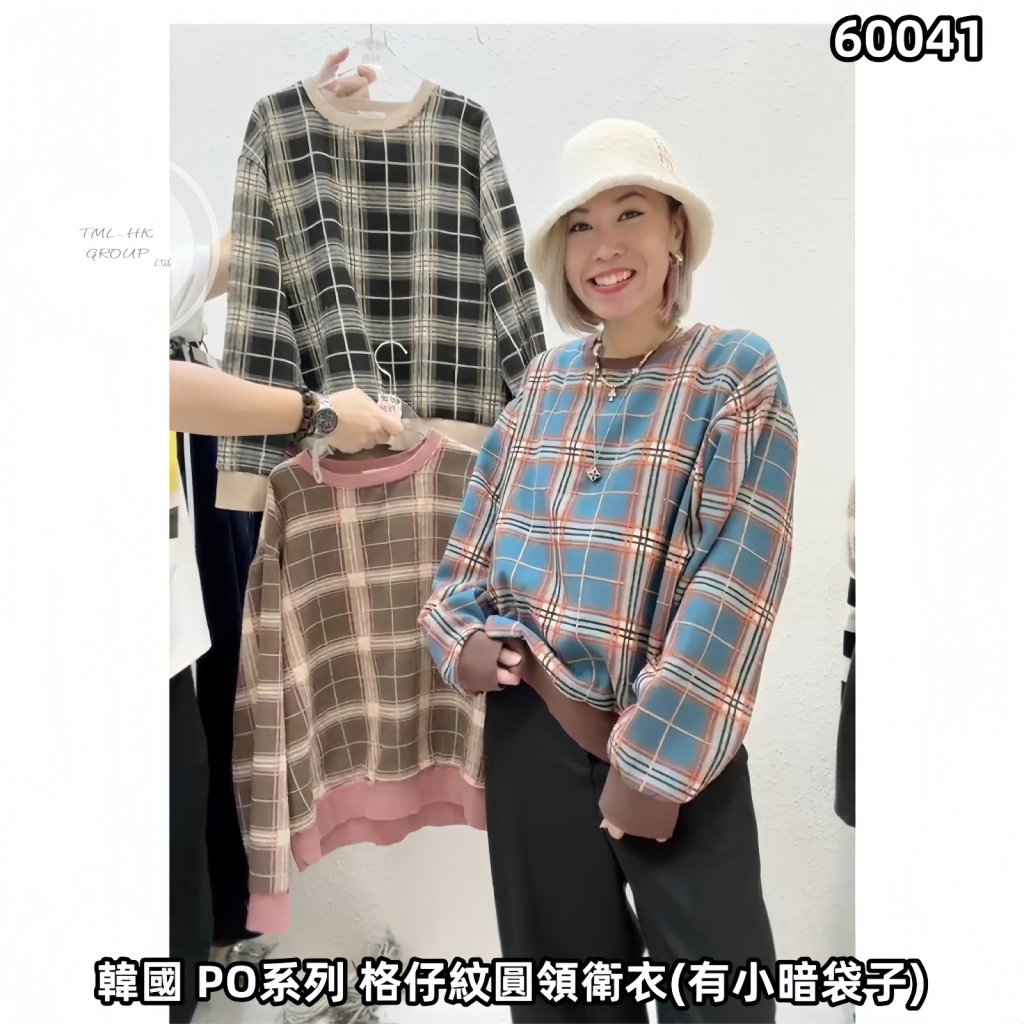 韓國 PO系列 格仔紋圓領衛衣(有小暗袋子)【5件包郵 | 4件減每件$10 | 20/12截單 | 預計1月中至尾到貨 | 20251215B(60041.)】