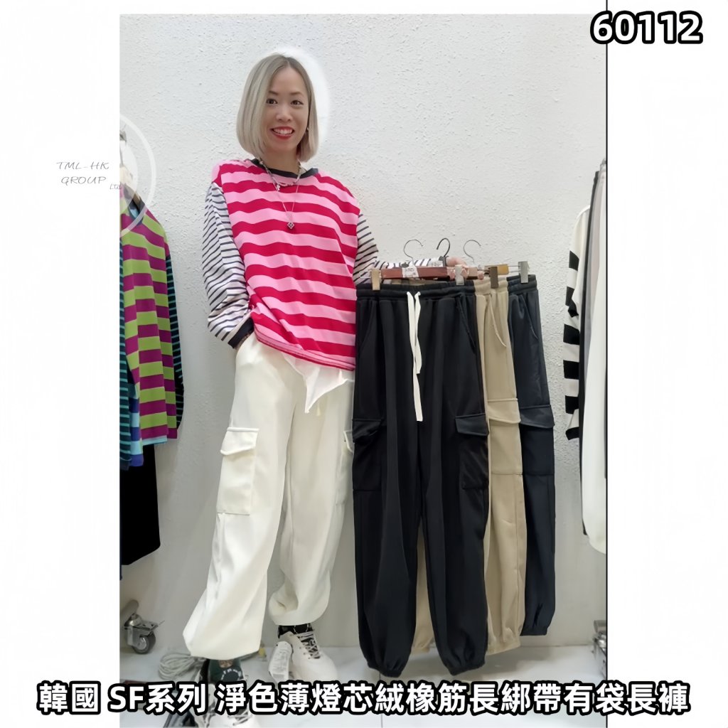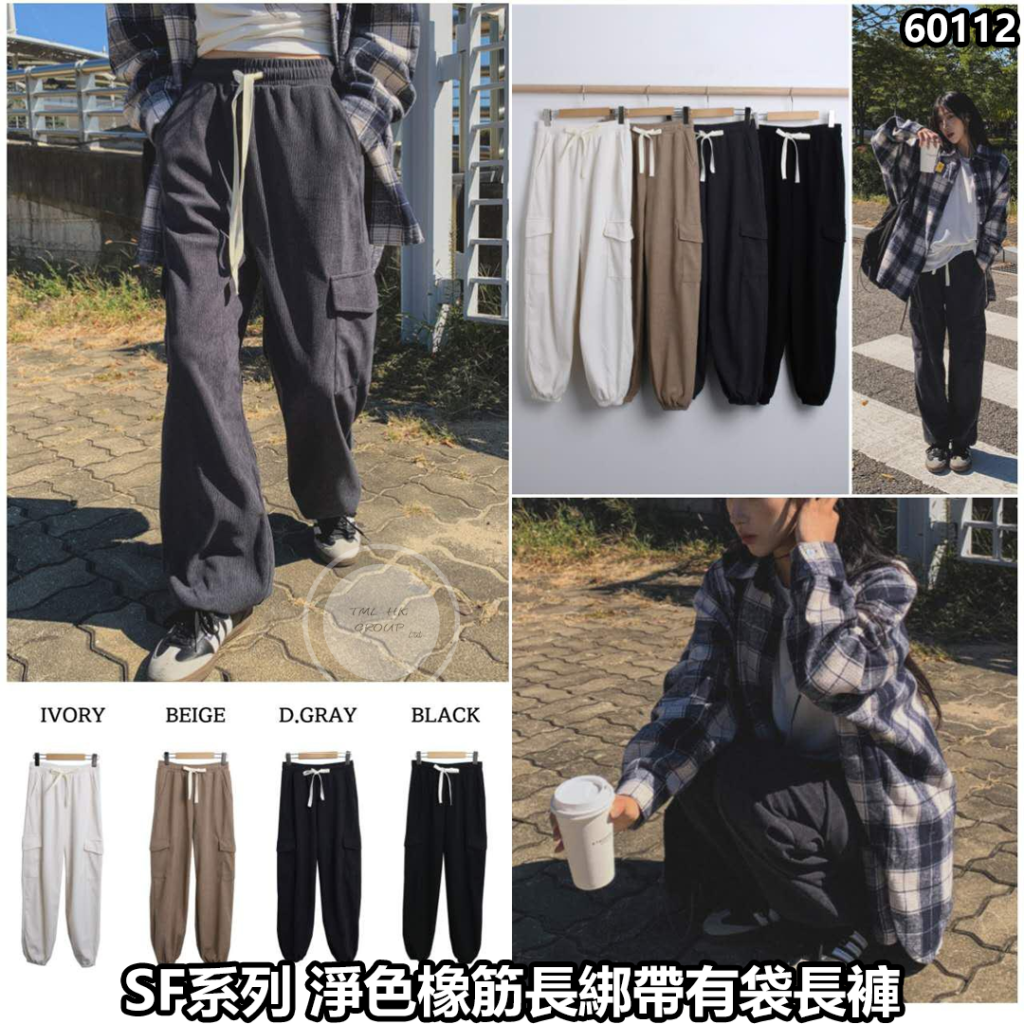 韓國 SF系列 淨色薄燈芯絨橡筋長綁帶有袋長褲【福利款 | 20/12截單 | 預計1月中至尾到貨 | 20251215B(60112.)】
