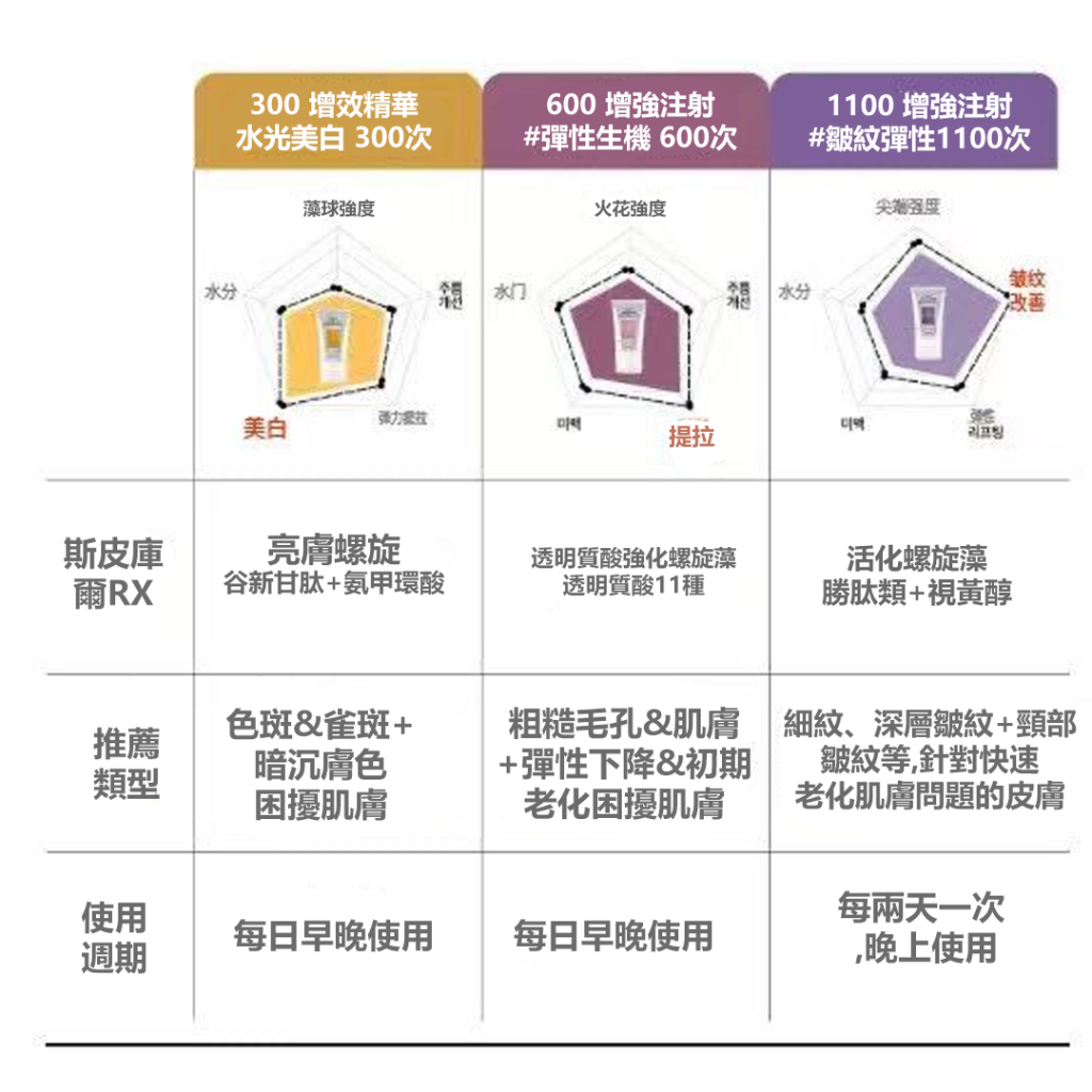 全系搭載第三代+第四代微晶技術+V-MODE塑顏+5D聚塑方案,針對美白、彈嫩、抗皺需求精准護膚,每款都能給你驚喜變化✨