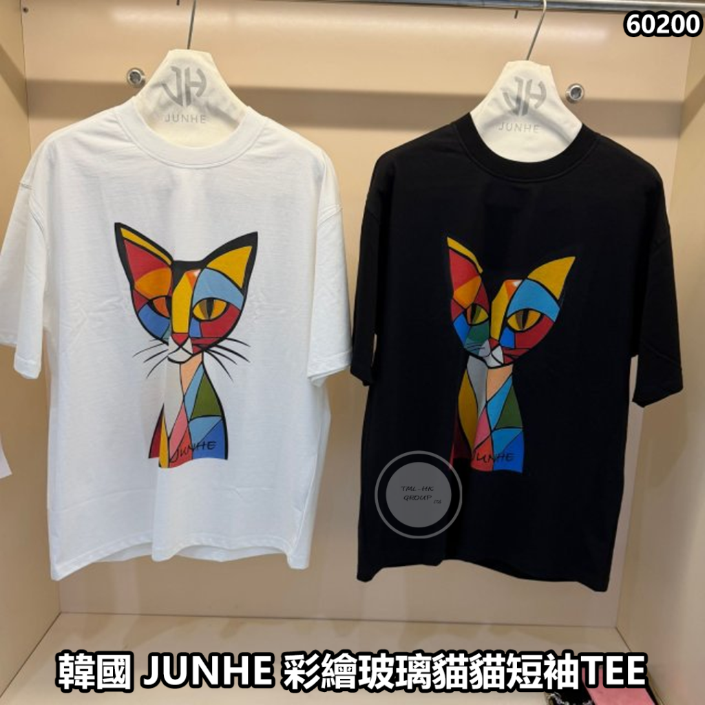 韓國 JUNHE 彩繪玻璃貓貓短袖TEE【買一件送隨機JUNHE頸鏈 | 23/12截單 | 預計1月尾到貨 | 20251218B(60200.)】