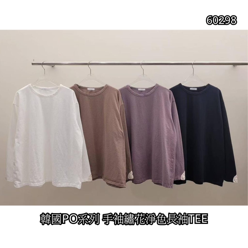 韓國PO系列 手袖繡花淨色長袖TEE【21/12截單 | 預計1月尾到貨 | 20251216B(60298.)】