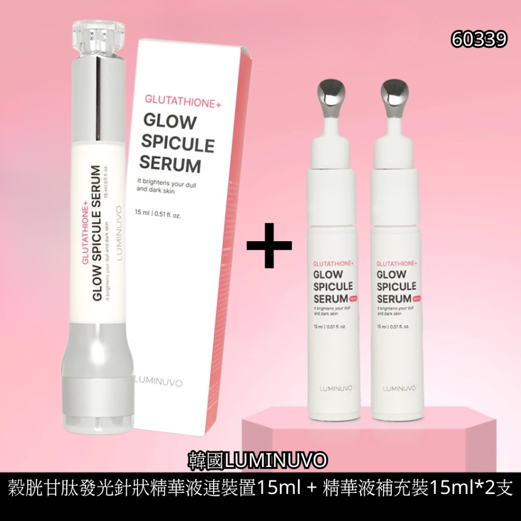 韓國LUMINUVO 穀胱甘肽發光針狀精華液連裝置15ml + 精華液補充裝15ml*2支【買滿$1000包郵 | 24/12截單 | 預計1月尾至2月初到貨 | 20251219B(60339.)】