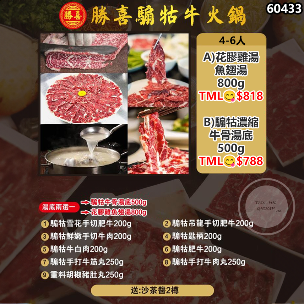 不夾單團 勝喜 4-6人勝喜騸牯牛火鍋套餐【獨立包郵 | 1/1截單 | 預計5/1開始由供應商聯絡凍鏈出貨 | 20251226B(60433.)】