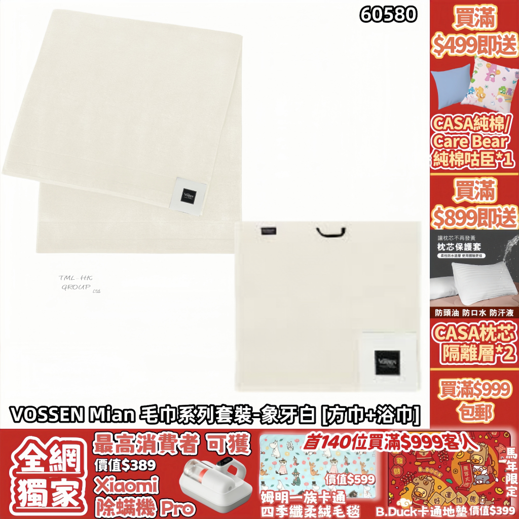 CASABLANCA VOSSEN Mian 毛巾系列套裝-象牙白 [方巾+浴巾] (VS1183710103 + VS1183730103 ) 【買滿$999包郵 | 買3件或以上9折 | 8/1截單 | 預計新年前收貨 | 20260103A(60580.)】