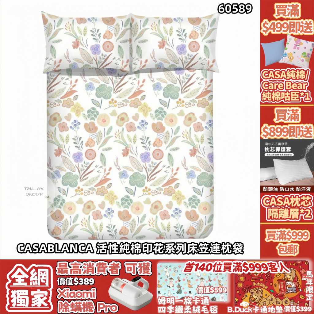CASABLANCA 活性純棉印花系列床笠連枕袋(CM355FDS)【買滿$999包郵 | 買3件或以上9折 | 8/1截單 | 預計新年前收貨 | 20260103A(60589.)】