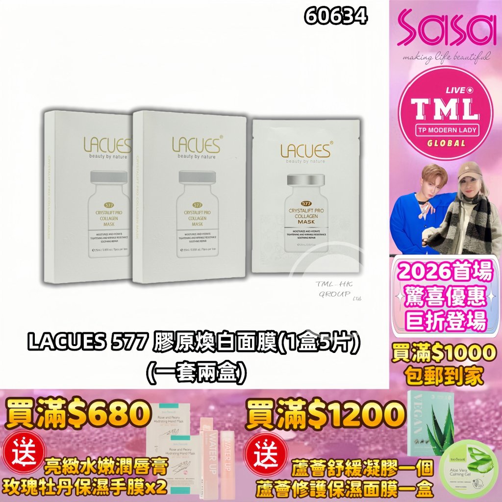TMLXSASA LACUES 577膠原煥白面膜 (1盒5片) (一套兩盒)【買滿$1000包郵(樂記/順豐) | 12/1截單 | 預計2月尾到貨 | 20260106A(60634.)】