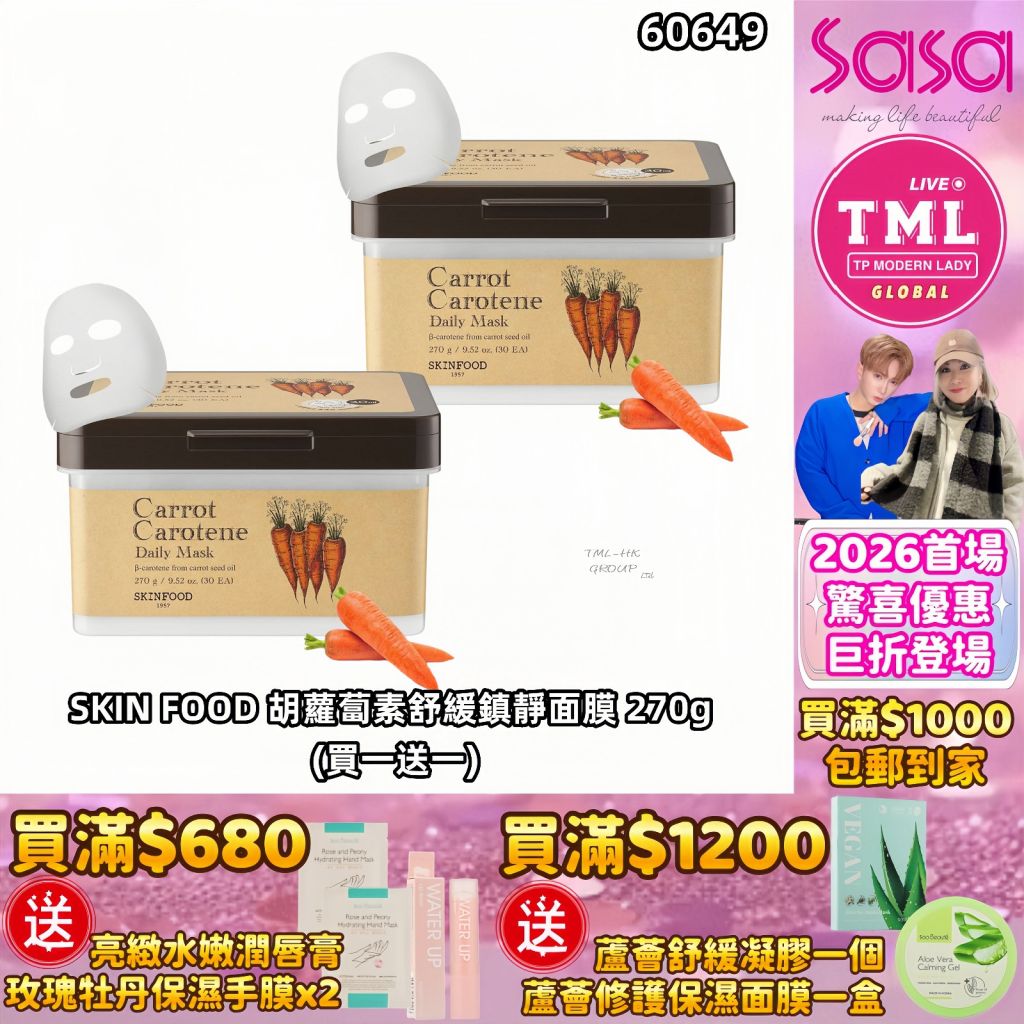 TMLXSASA SKIN FOOD 胡蘿蔔素舒緩鎮靜面膜 270g (買一送一)【買滿$1000包郵(樂記/順豐) | 12/1截單 | 預計新年前出貨 | 20260106A(60649.)】