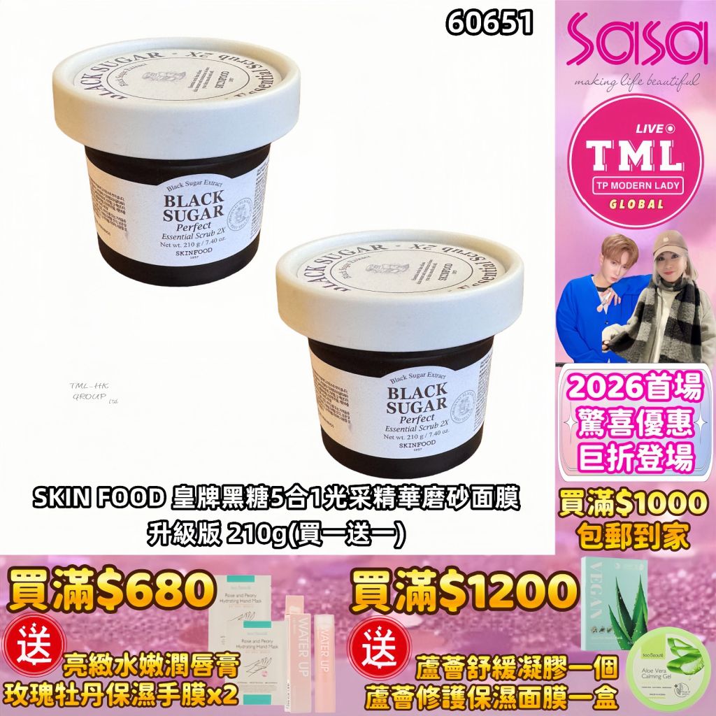 TMLXSASA SKIN FOOD 皇牌黑糖5合1光采精華磨砂面膜升級版 210g (買一送一)【買滿$1000包郵(樂記/順豐) | 12/1截單 | 預計新年前出貨 | 20260106A(60651.)】