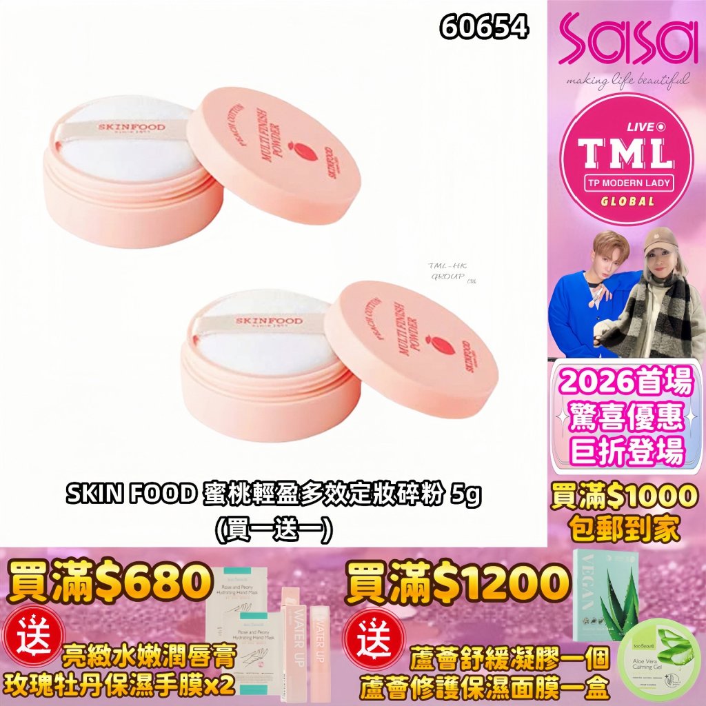 TMLXSASA SKIN FOOD 蜜桃輕盈多效定妝碎粉 5g(買一送一)【買滿$1000包郵(樂記/順豐) | 12/1截單 | 預計新年前出貨 | 20260106A(60654.)】