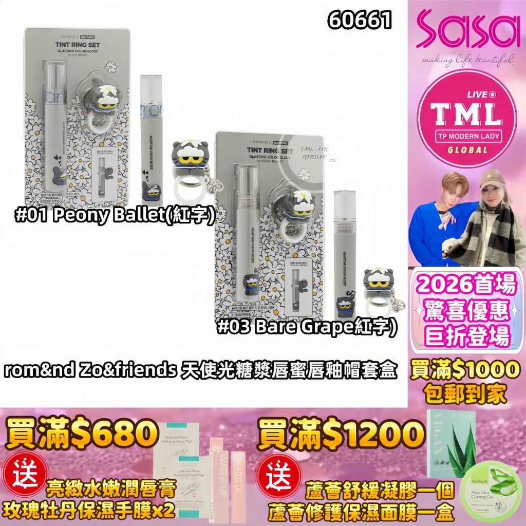 TMLXSASA rom&nd Zo&friends 天使光糖漿唇蜜唇釉帽套盒【買滿$1000包郵(樂記/順豐) | 12/1截單 | 預計新年前出貨 | 20260106A(60661.)】