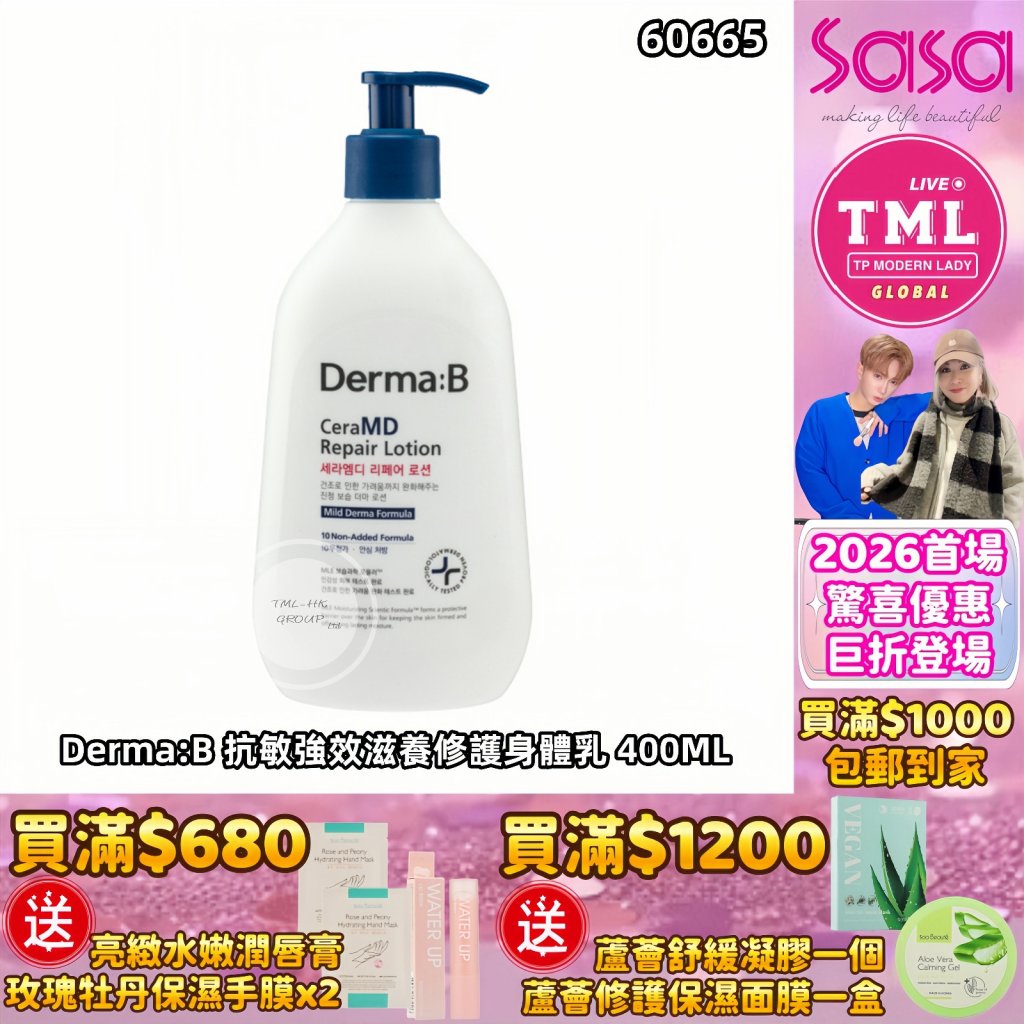 TMLXSASA Derma:B 抗敏強效滋養修護身體乳 400ML【買滿$1000包郵(樂記/順豐) | 12/1截單 | 預計新年前出貨 | 20260106A(60665.)】