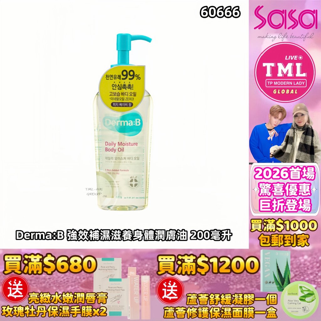 TMLXSASA Derma:B 強效補濕滋養身體潤膚油200ML【買滿$1000包郵(樂記/順豐) | 12/1截單 | 預計新年前出貨 | 20260106A(60666.)】