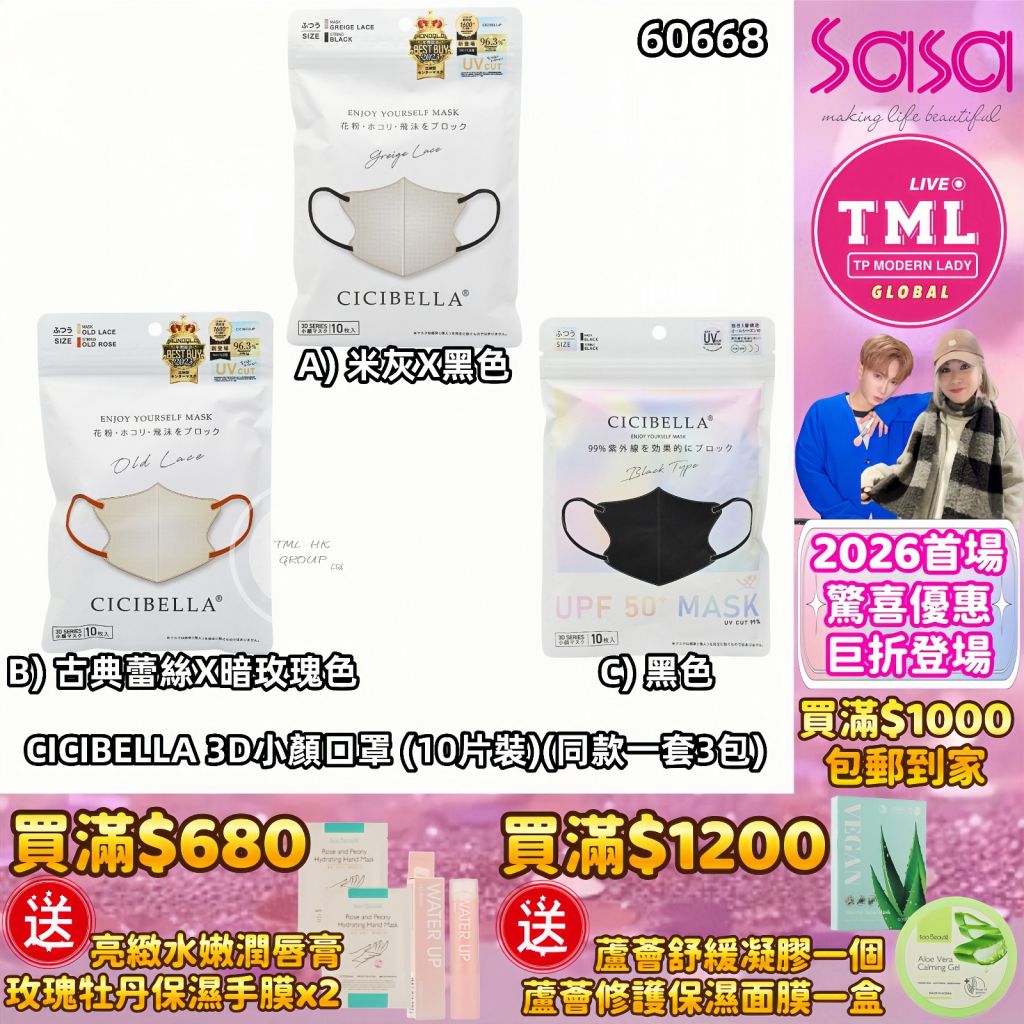 TMLXSASA CICIBELLA 3D小顏口罩 (10片裝)【同款一套3包 | 買滿$1000包郵(樂記/順豐) | 12/1截單 | 預計新年前出貨 | 20260106A(60668.)】