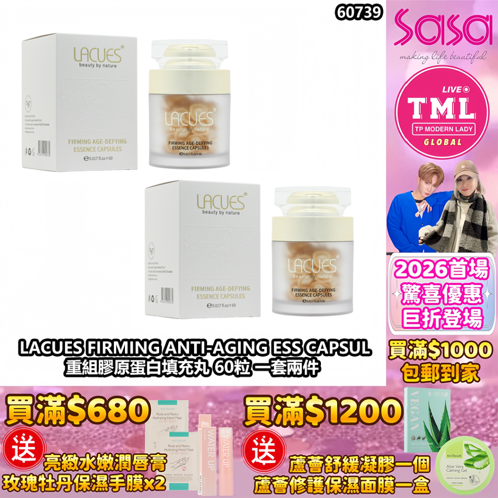 TMLXSASA LACUES FIRMING ANTI-AGING ESS CAPSUL 重組膠原蛋白填充丸 60粒【一套兩件 | 買滿$1000包郵(樂記/順豐) | 12/1截單 | 預計2月尾到貨 | 20260106A(60739.)】