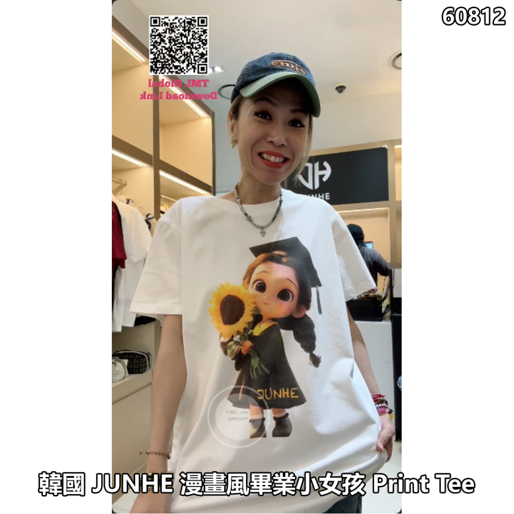 主頁 韓國 JUNHE 漫畫風畢業小女孩 Print Tee【買一件送隨機款式/碼數JUNHE TEE一件 | 22/1截單 | 預計2月中至尾到貨 | 20260117A(60812.)】