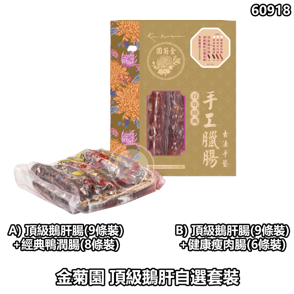 B) 頂級鵝肝腸(9條裝)+健康瘦肉腸(6條裝)