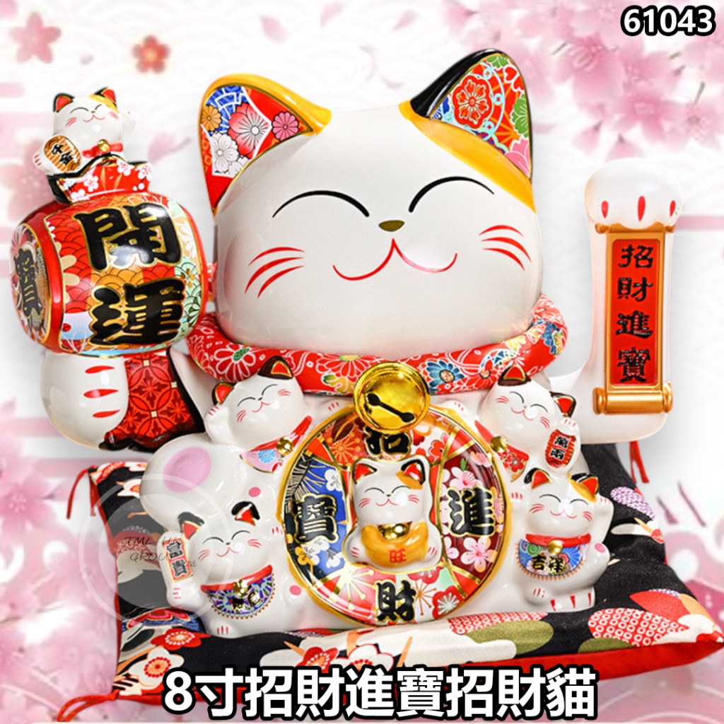 8寸招財進寶招財貓(MM115)【招財貓產品買滿$888送艾草香包吊飾 (一套5個,隨機顔色) | 11/1截單 | 預計2月初到貨 | 20260107A(61043.)】
