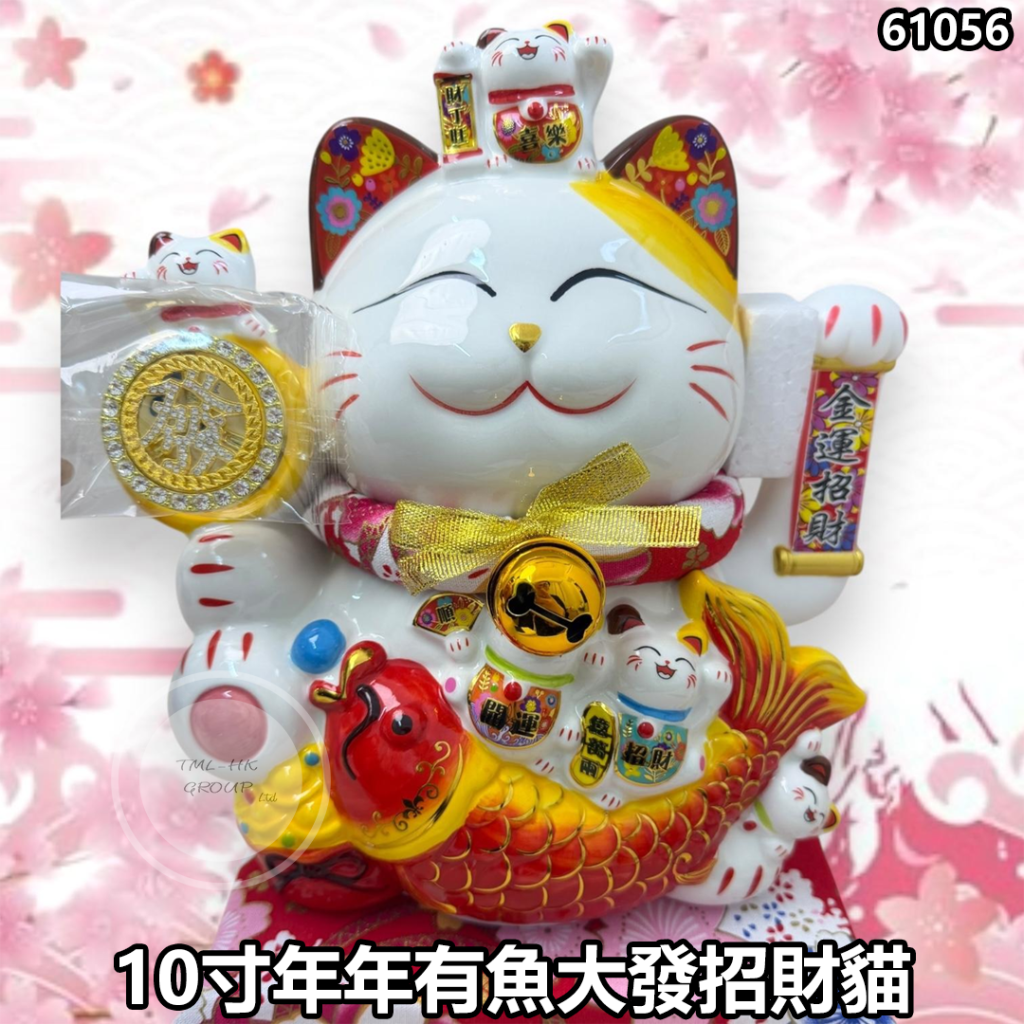 10寸年年有魚大發招財貓(MM80)【招財貓產品買滿$888送艾草香包吊飾 (一套5個,隨機顔色) | 11/1截單 | 預計2月初到貨 | 20260107A(61056.)】