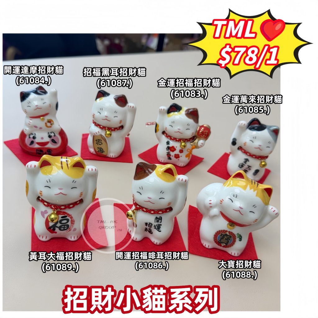 開運招福啡耳招財貓 (MM50)【招財貓產品買滿$888送艾草香包吊飾 (一套5個,隨機顔色) | 11/1截單 | 預計2月初到貨 | 20260107A(61086.)】