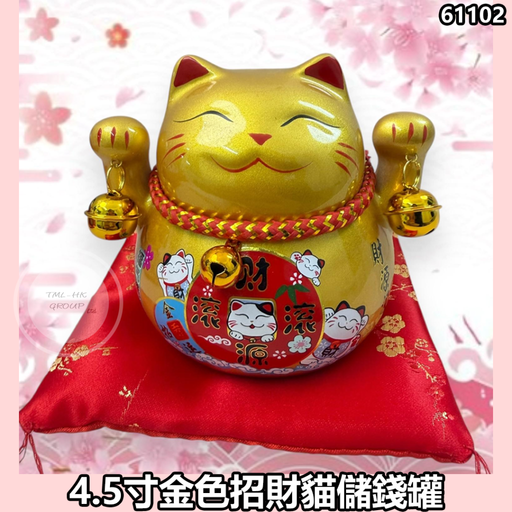 4.5寸金色招財貓儲錢罐 (MM28)【招財貓產品買滿$888送艾草香包吊飾 (一套5個,隨機顔色) | 11/1截單 | 預計2月初到貨 | 20260107A(61102.)】