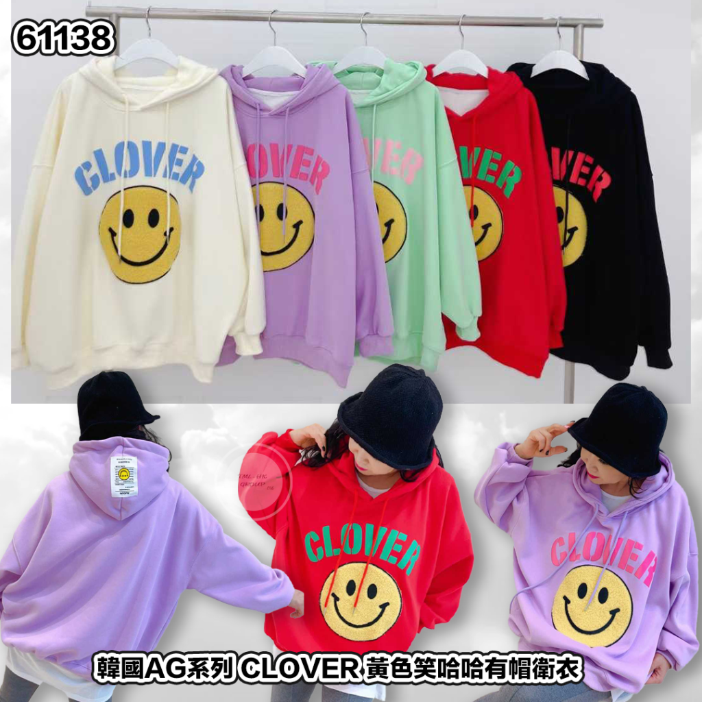 韓國AG系列 CLOVER 黃色笑哈哈抓毛有帽衛衣【四件以上每件減-$10 | 五件包郵 | 18/1截單 | 預計2月中至尾到貨 | 20260113A(61138.)】