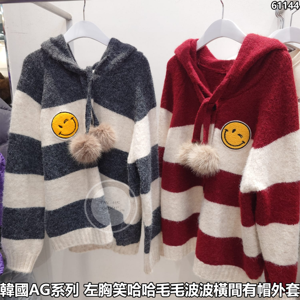 韓國AG系列 左胸笑哈哈毛毛波波橫間有帽外套【四件以上每件減-$10 | 五件包郵 | 18/1截單 | 預計2月中至尾到貨 | 20260113A(61144.)】