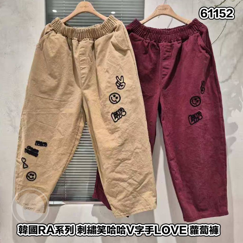 韓國RA系列 刺繡笑哈哈V字手LOVE 蘿蔔褲【福利款 | 五件包郵 | 18/1截單 | 預計2月中至尾到貨 | 20260113A(61152.)】