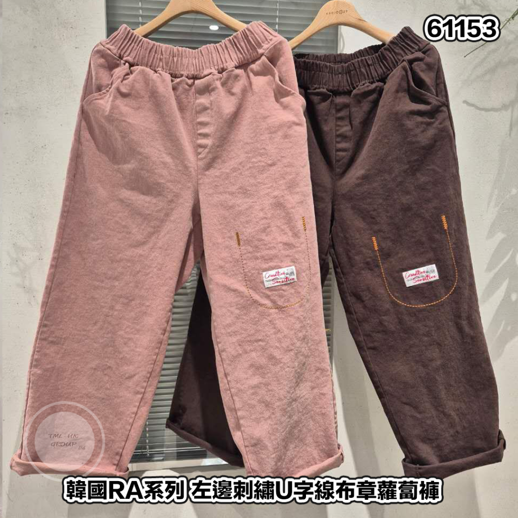 韓國RA系列 左邊刺繡U字線布章蘿蔔褲【福利款 | 五件包郵 | 18/1截單 | 預計2月中至尾到貨 | 20260113A(61153.)】