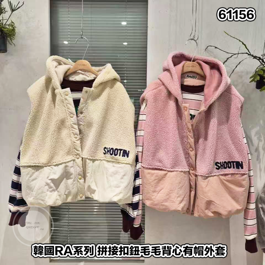 韓國RA系列 拼接扣鈕毛毛背心有帽外套【四件以上每件減-$10 | 五件包郵 | 18/1截單 | 預計2月中至尾到貨 | 20260113A(61156.)】