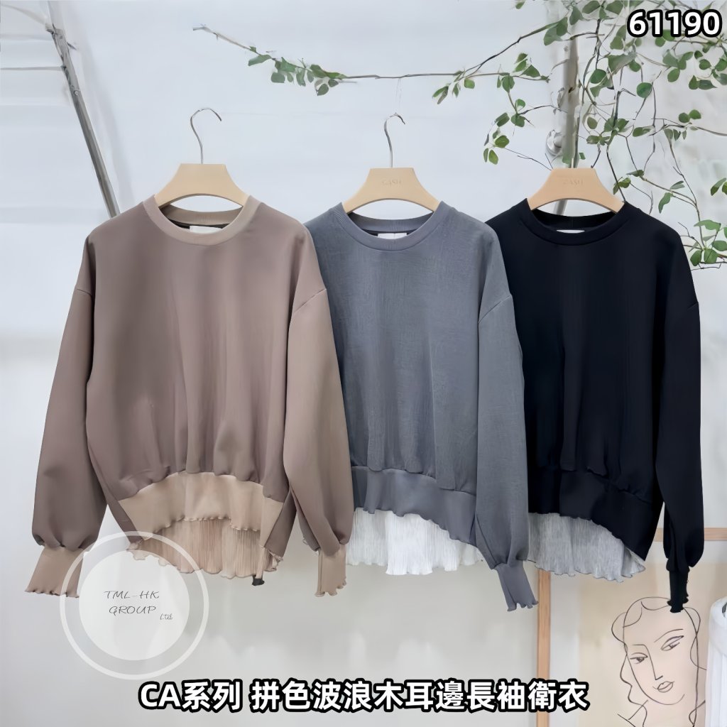 韓國 CA系列 拼色波浪木耳邊長袖衛衣【買滿5件包郵 | 買滿4件減$10 | 20/1截單 | 預計2月尾到貨 | 20260115A(61190.)】