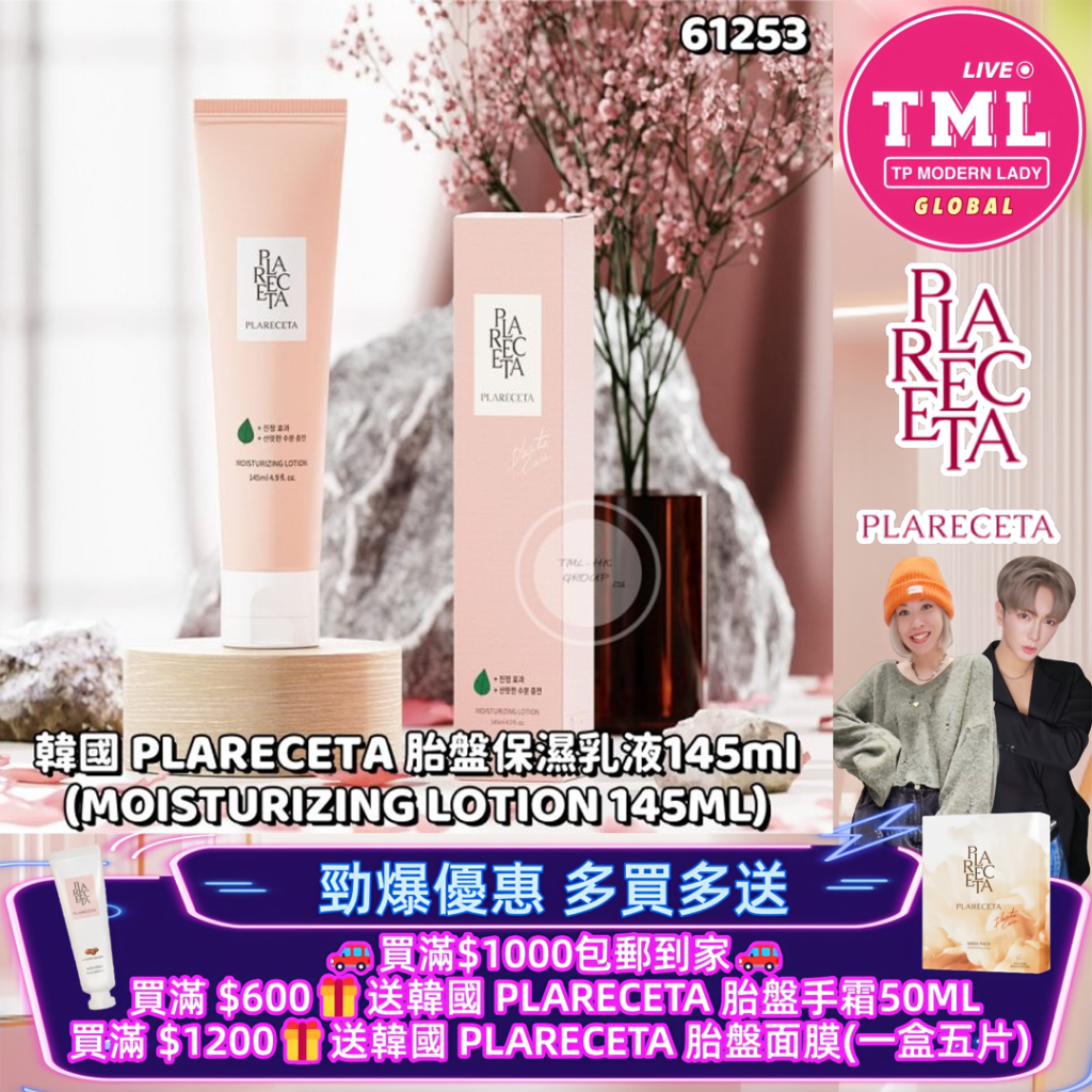 韓國 PLARECETA 胎盤保濕乳液145ml(MOISTURIZING LOTION 145ML)【買滿$1000包郵 | 22/1截單 | 預計3月尾至4月初到貨 | 20260117B(61253.)】