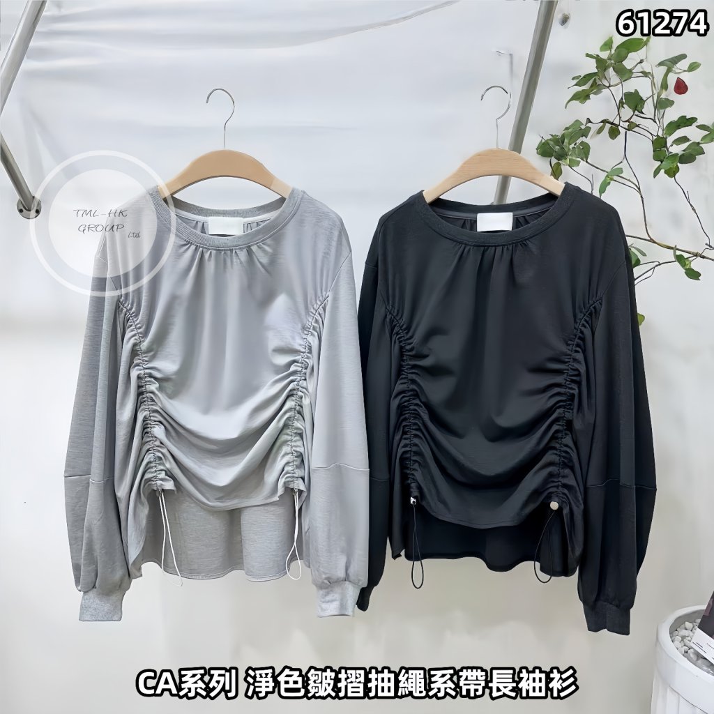 韓國 CA系列 淨色皺摺抽繩系帶長袖衫【買滿5件包郵 | 福利款 | 20/1截單 | 預計2月尾到貨 | 20260115A(61274.)】