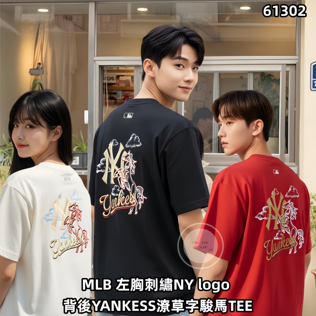 韓國 MLB 左胸刺繡NY logo 背後YANKESS潦草字駿馬TEE(3ATSQ0261)【22/1截單 | 預計2月尾到貨 | 20260119A(61302.)】